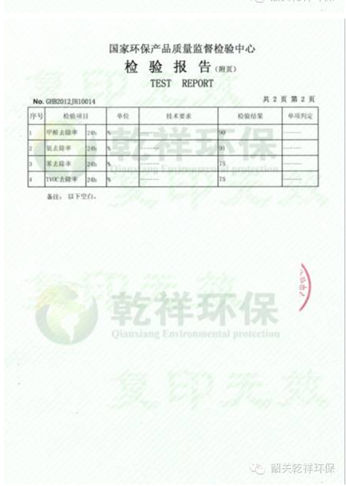 藝馨復合甲醛凈化劑檢測報告